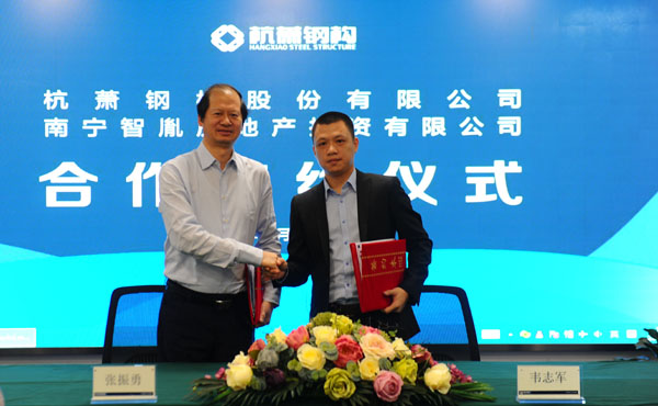 2017年4月19日,半岛官方网页 (以下简称:bd游戏的官方 )与南宁智胤房地产投资有限公司(以下简称:南宁智胤)在杭州就bd游戏的官方 钢结构住宅体系的相关技术资源的使用和实施许可等方面达成共识。双方将强强联手在当地共同建设装配式钢结构生产基地,开启装配式钢结构绿色住宅建筑发展的新篇章。这是bd游戏的官方 在广西首个装配式钢结构战略合作项目,随着项目的推进,装配式钢结构住宅将惠及广西南宁市民。