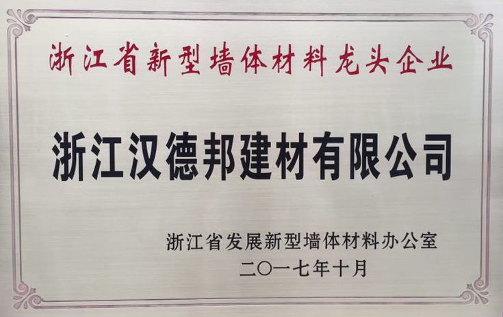 日前,浙江汉德邦建材有限公司通过浙江省发展新型墙体材料办公室的认定,荣获“浙江省新型墙体材料龙头企业”称号。