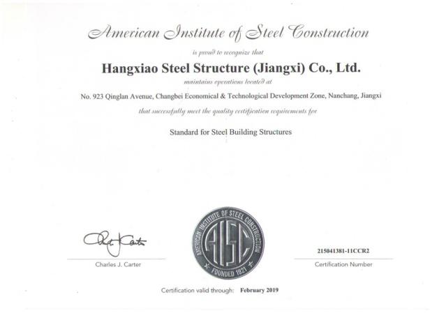 江西杭萧通过AISC标准认证,是对公司管理体系持续改善的高度认可。AISC认证证书的持续获得,将激励江西杭萧继续用高标准、高质量要求来打造一流的钢结构制造企业。今后江西杭萧将继续努力,严格执行标准要求,确保江西杭萧AISC管理体系良好运行,为公司产品推向国际市场提供强有力支持。