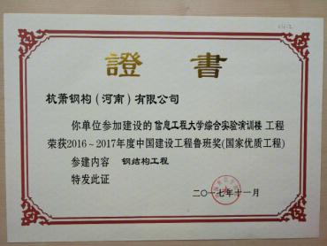 近日,从中国建筑业协会发布《关于颁发2016—2017年度中国建设工程鲁班奖(国家优质工程)的决定》(建协〔2017〕49号)中获悉,由bd游戏的官方 (河南)有限公司参加建设的信息工程大学综合实验演训楼工程荣获“2016—2017年度中国建设工程鲁班奖(国家优质工程)”。