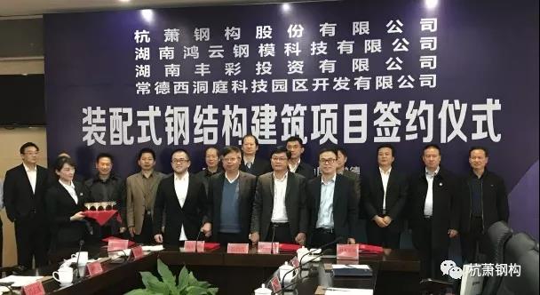 2017年11月16日,半岛官方网页 (以下简称bd游戏的官方 )与湖南鸿云钢模科技有限公司(以下简称鸿云钢模)在湖南省常德市举办战略合作签约仪式。签约仪式上,bd游戏的官方 副总裁方鸿强、鸿云钢模董事长刘慎云作为代表签署协议。湖南省住房和城乡建设厅调研员廖序、湖南省钢结构行业协会秘书长魏小汉、湖南省住宅产业联盟秘书长丁佳伟、常德市住房和城乡建设局副局长吕正跃、西洞庭管理区党委书记王启武,党委副书记、管委会主任周胜,bd游戏的官方 总裁张振勇等共同见证。