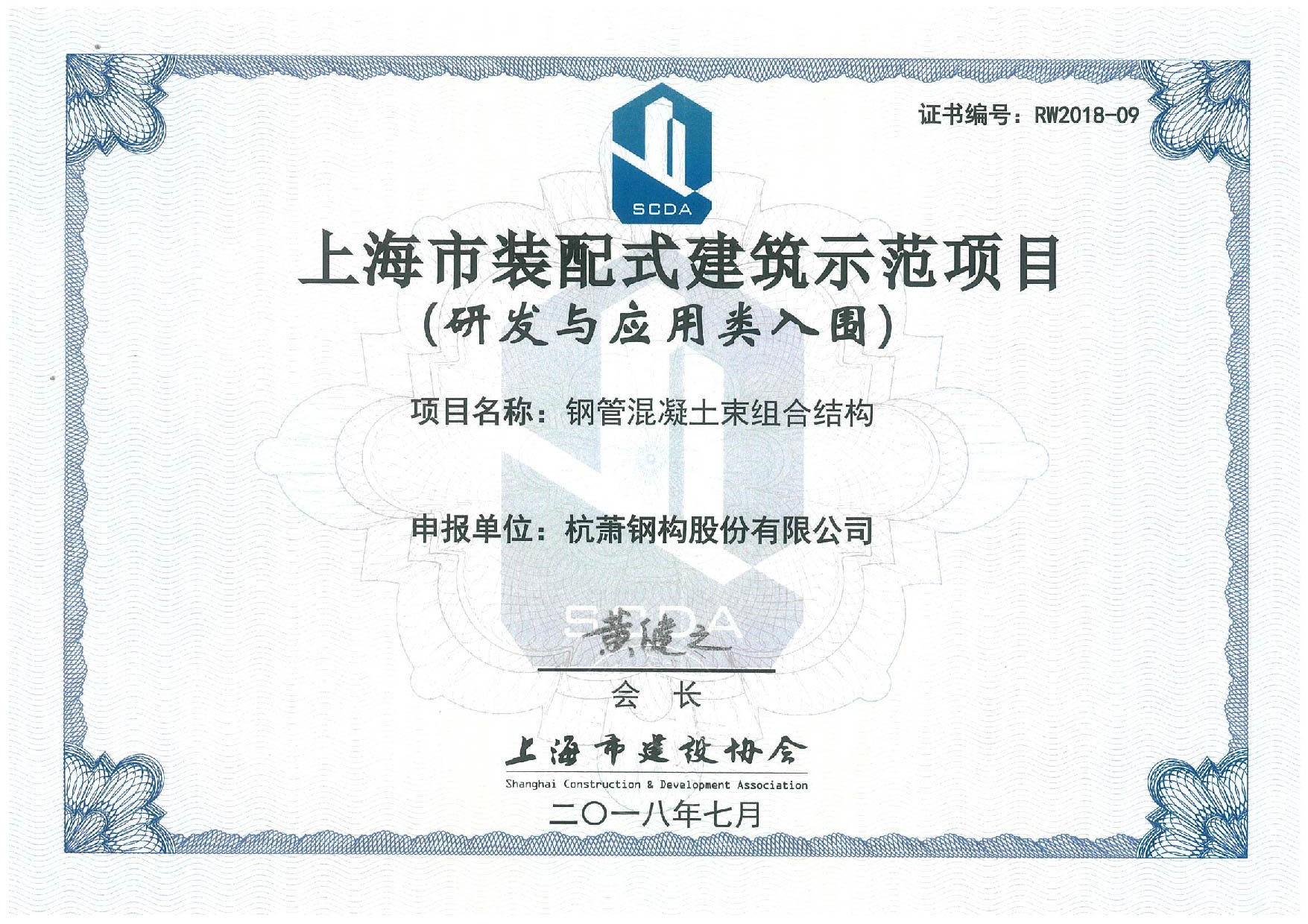 7月26日,从上海市建设协会(沪建协2018第35号)获悉,由半岛官方网页 (以下简称“杭萧钢构”)设计研发的“钢管混凝土束组合结构”成功入选上海市装配式建筑示范项目。