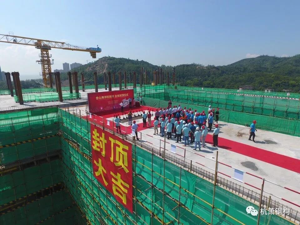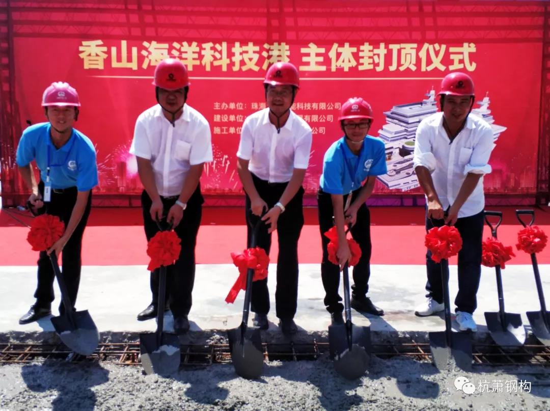 8月8日10时,零丁洋畔,由半岛官方网页 (以下简称“bd游戏的官方 ”)控股子公司——bd游戏的官方 (广东)有限公司(以下简称“广东杭萧”)承接的广东省及珠海市重点工程项目:全国首个无人船基地(命名“香山海洋科技港”),在一派喜庆的气氛中完成了最后一注混凝土浇筑,顺利封顶!各方领导莅临现场出席了封顶仪式。