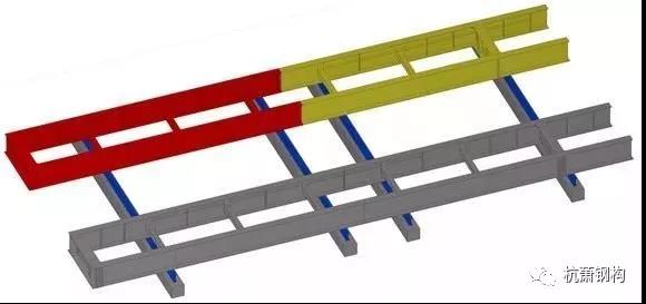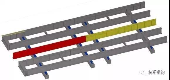 为确保吊装顺利实施,河北杭萧项目部对实施方案进行了多次探讨,最终采用单节桥梁段各划分若干个小节段,在制造工厂进行组装,运输到现场后在组装平台上组拼成大节段,双机抬吊安装方法。