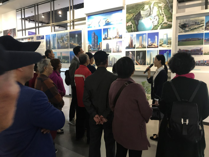 员工家属在展厅认真听讲解