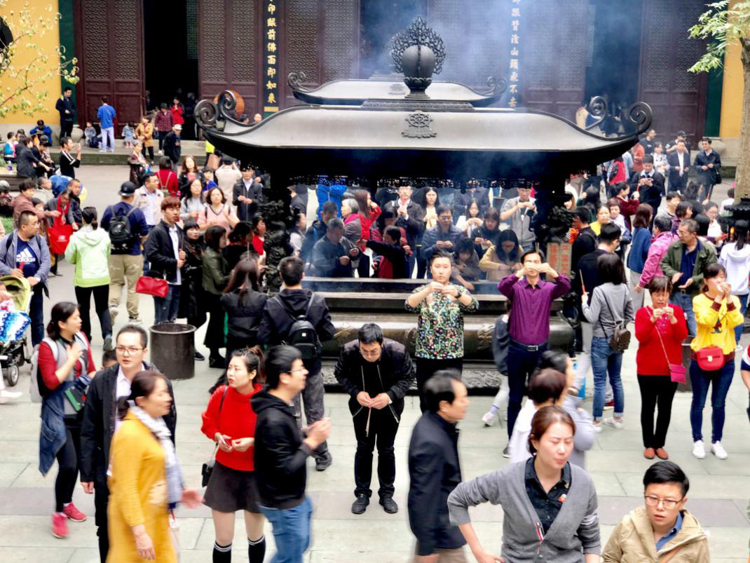 员工及家属们在灵隐寺祈福
