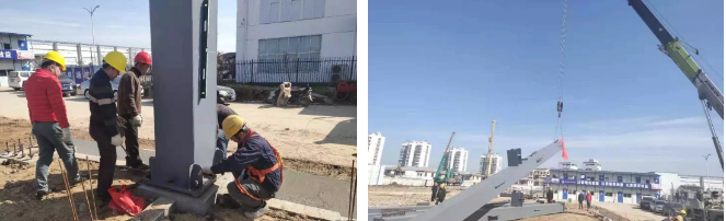 “涟水创新创业园”项目钢结构形式为箱型构件形成的空间结构。施工现场采用地面拼装成型,再用履带式起重机整体吊装的方法进行施工,钢结构高空吊装是整个双创园建设项目的施工重点,钢结构首吊成功具有里程碑式的意义,为项目总进度的推进打下了坚实的基础。