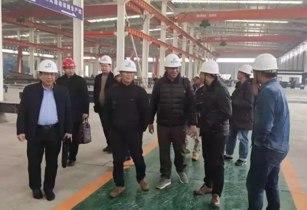 在工作人员的陪同下,考察团一行进入江苏中天杭萧的厂房,这里分布着依托bd游戏的官方 钢结构住宅体系技术为支撑的若干生产线。江苏中天杭萧常务副总何斌介绍到,江苏中天杭萧于2017年3月20日正式开工建设,2018年5月试运行,8月份与上海美建建筑系统(中国)有限公司(美全资企业)建立长期合作关系。目前已参与南京苏宁、昆山唯品会华东运营中心、德国赛夫汽车零部件、南京天加低温余热发电机组、杭州天融置业项目、徐州天虹、淮安涟水创新创业园等项目。通过常务副总何斌的详细介绍及亲身考察,考察团一行对江苏中天杭萧的综合实力有了更深的了解。