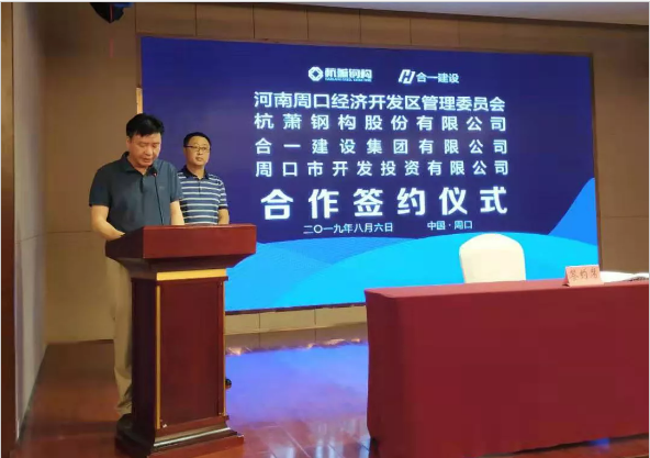 bd游戏的官方 总裁单际华讲到,bd游戏的官方 专注于钢结构领域30多年,是住建部首批建筑钢结构定点企业、国家火炬计划重点高新技术企业、首个国家住宅产业化基地和首批装配式建筑产业基地。合一建设集团作为闽商企业,深耕河南二十多年,一直引领着当地行业发展。今天,bd游戏的官方 能与合一建设集团再次合作,共同在周口打造装配式建筑产业化基地,是“天作之合、天赐良缘”,是合一建设集团对杭萧此前工作的肯定,更是我们共同事业的良好开端。我们以国家装配式建筑产业转型为契机,在周口市委市政府及经开区政府的正确领导与大力支持之下,在合一建设集团与bd游戏的官方 的精诚合作与共同努力之下,以诚实守信的工作态度,为周口市百姓创造更多的就业机会,为政府创造更多的产业、产值、税收等经济效益,为社会承担更多的责任,争取申请成为省级装配式建筑示范基地,为周口市早日实现绿色装配式建筑产业化做出积极的贡献。