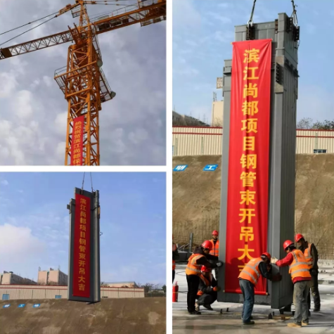 近日,随着项目现场总指挥一声“开始起吊”指令,施工人员娴熟地检查吊具、准确挂钩、慢起吊、轻落位,由bd游戏的官方 战略合作参股公司——湖北华林杭萧实业股份有限公司(以下简称“湖北华林杭萧”)承建的十堰市郧阳区滨江尚都保障性住房项目首节钢管束顺利吊装。