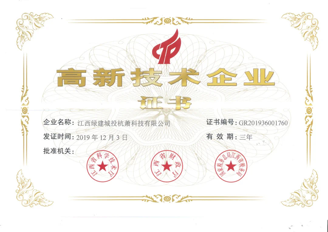 近日,经江西省高新技术企业认定管理工作领导小组办公室组织专家严格评审,bd游戏的官方 战略合作参股公司——江西绿建城投杭萧科技有限公司(以下简称“江西绿建城投杭萧”)获评由江西省科学技术厅、江西省财政厅、国家税务总局江西省税务局联合颁发的高新技术企业证书,意味着江西绿建城投杭萧在自主知识产权,研究开发的组织管理水平、科技成果转化能力、成长性指标等多个环节都属于行业领先水平。