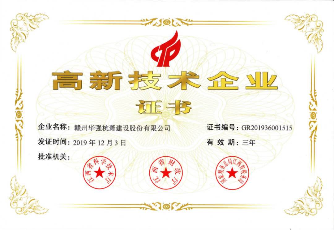 近日,bd游戏的官方 战略合作参股公司——赣州华强杭萧建设股份有限公司(以下简称“赣州华强杭萧”)获评由江西省科学技术厅、江西省财政厅、国家税务总局江西省税务局联合颁发的高新技术企业证书,意味着赣州华强杭萧的科技创新成果得到了社会各界的认可、为推动绿色建筑发展所做的贡献得到了肯定。