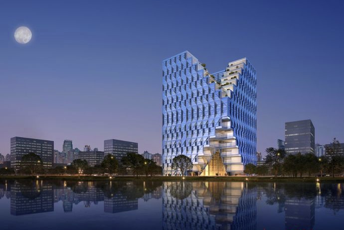 杭州绿城西溪深蓝项目呼应了国家“大众创业、万众创新”的主旋律,整个建筑与科技创新主题相契合,为双创人群提供了“未来社区”的范本,首次创造了工作与生活一体融合的“办公+”青年创客空间。项目建成后,将是杭州以“x”聚合全玻璃幕墙的地标之作。
