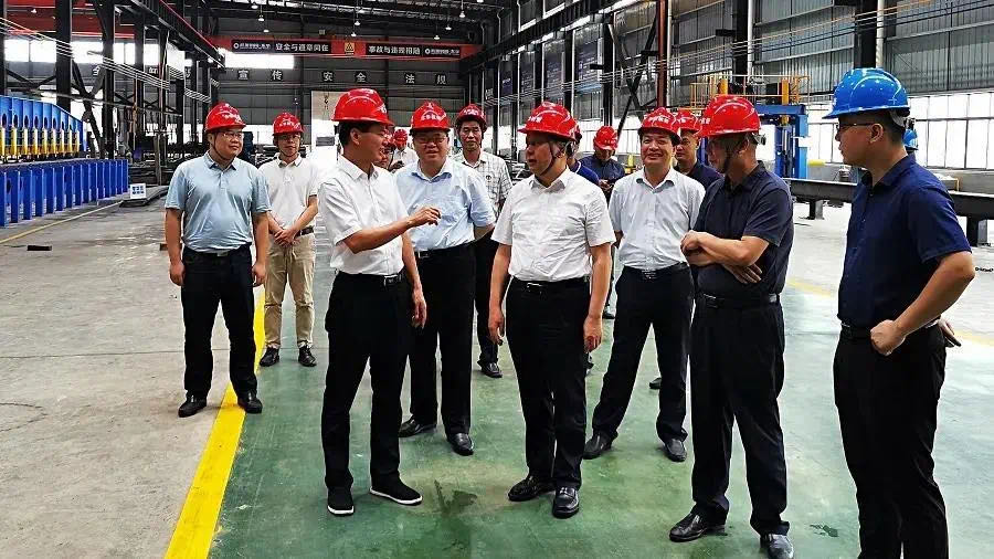 近日,湖南省人大常委会副主任、省总工会主席周农一行莅临bd游戏的官方 战略合作参股公司——湖南东华bd游戏的官方 有限公司(以下简称“湖南东华杭萧”)双峰县钢结构装配式绿色建筑产业基地调研指导。娄底市人大常委会党组书记、副主任石艳萍等市领导及双峰县委书记禹敏等县领导陪同调研。湖南东华杭萧领导班子热情接待。