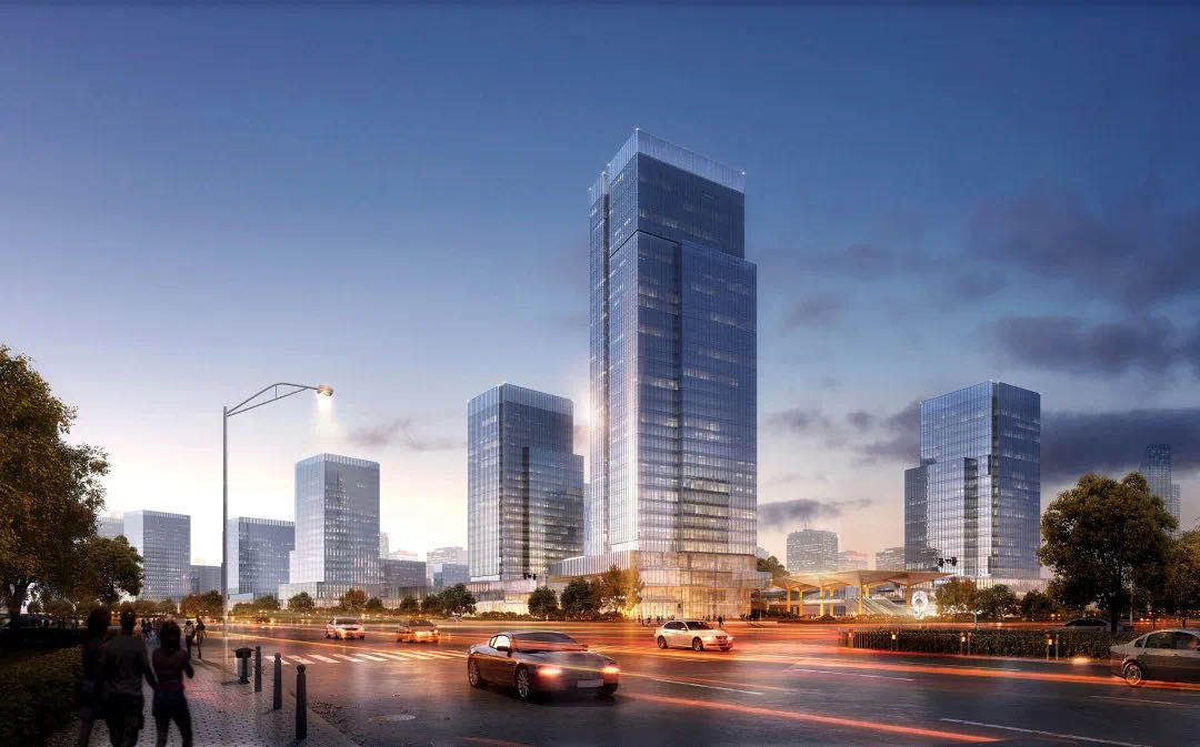 该项目位于西安市高新区的创新发展轴线上,建设用地面积43.24亩,总建筑面积16.1万㎡,其中地上10.4万㎡,地下5.7万平方米,包括1#、2#两座塔楼和底部四层裙房,三层地下室。其中,1#塔楼为超高层建筑,建筑面积52268.47㎡,高147.4m,地上33层,标准层层高4.2米。2#塔楼为高层建筑,建筑面积26759.86㎡,高94m,地上21层,标准层层高4.2米。