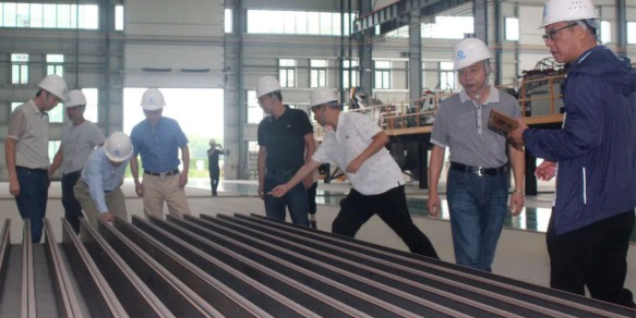 近日,江苏省住房城乡建设厅工程质量安全监管处二级调研员吴尚松,市场监管局标准化管理处一级主任科员陈爱华,地方金融监管局金融发展二处主任科员缪军伟,南京长江都市建筑设计股份有限公司研究员田炜,南京工业大学副教授、硕士生导师蒋博雅,江苏省住房城乡建设厅绿色建筑与科技处一级主任科员俞锋一行莅临bd游戏的官方 战略合作参股公司——江苏江海杭萧绿色建筑科技有限公司(以下简称“江苏江海杭萧”)钢结构装配式生产基地进行调研。