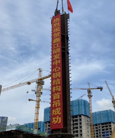 近日,由bd游戏的官方 (山东)有限公司(以下简称“山东杭萧”)承建的鑫江研发中心项目顺利完成首段首吊任务,标志着该项目钢结构部分正式进入施工阶段。