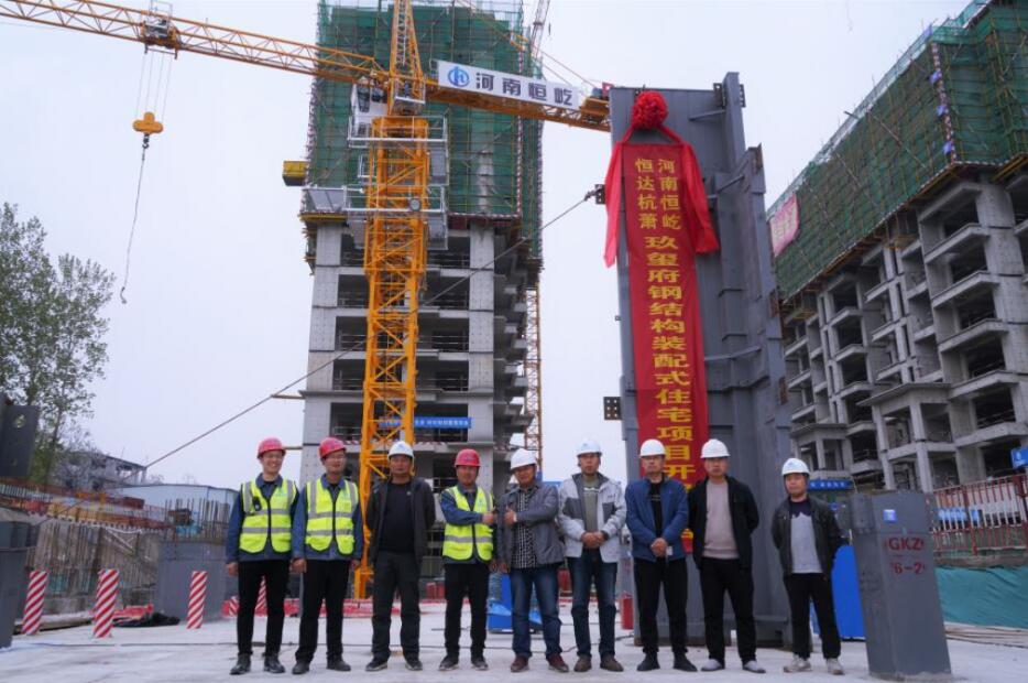 近日,伴随着震耳欲聋的鞭炮声,许昌市玖玺府项目首根钢柱在众人的注视下缓缓起吊,精准落位,完成吊装。该项目是由bd游戏的官方 战略合作参股公司——许昌恒达杭萧建筑科技有限公司(以下简称“许昌恒达杭萧”)参建的钢管束装配式高层住宅项目。许昌市建安区住建局、许昌许建置业有限公司、许昌恒达集团、河南建标工程管理有限公司等相关领导莅临现场指导工作。