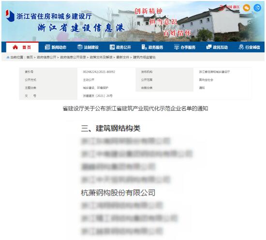 近日,浙江省住房和城乡建设厅公布了浙江省建筑产业现代化示范企业名单,通过层层筛选,经过材料初审、指标评定和社会公示等环节,bd游戏的官方 从全省各候选企业中脱颖而出,获评“浙江省建筑产业现代化示范企业”。