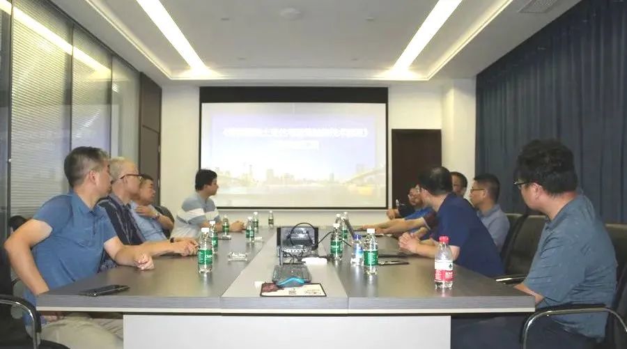 参观结束后,王华秘书长、江苏江海杭萧董事长李凤祥等领导在会议室共同听取了田炜博士关于制定江苏省《钢管混凝土束住宅建筑结构技术标准》的立项审查工作的汇报。