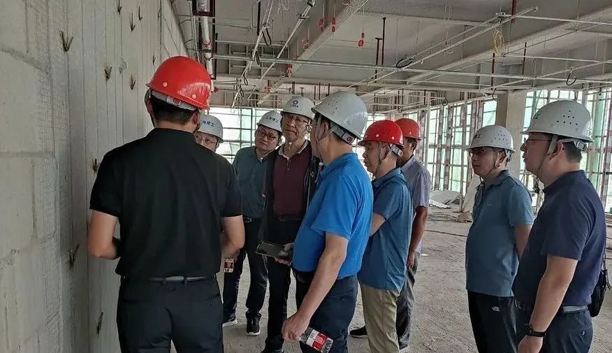 首先,王华秘书长一行参观了海陵区卫生服务中心项目。江苏江海杭萧项目经理杨中苏向王华秘书长详细介绍了项目的进展情况,该项目钢结构主体已经封顶,目前正在进行内部装修工作。该项目采用装配式钢管束结构体系,具有抗震性能优、施工周期短、绿色环保、现场施工噪音小粉尘少等优点。