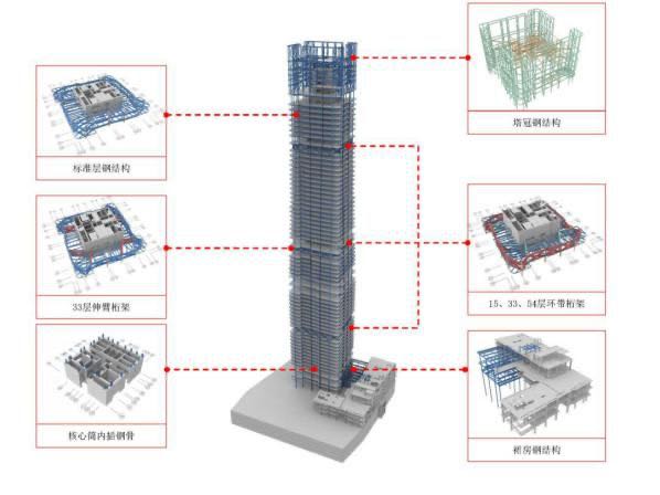 该工程钢结构设计涵盖了伸臂桁架、环带桁架、劲性混凝土柱、钢管混凝土柱、钢板剪力墙、空间结构塔冠和超薄钢筋桁架楼层板等各种结构,设计复杂,施工难度大;成为汉德邦建材2020年首个钢筋桁架楼承板重点代表性项目。