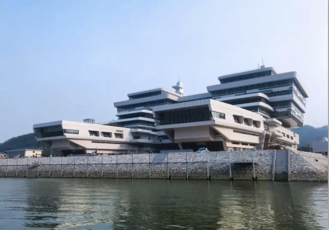 该项目钢结构施工中,攻克了大跨度连廊桁架跨度大、构件重、安装精度要求高、桁架截面尺寸大、单件重量大、预拼装和吊装难度大的技术难题。其中,单榀桁架最大跨度为46.63m,桁架的最大截面高度为6.28m,重量达42.5吨,完成了船头悬挑桁架最大约17m,船尾悬挑桁架最大约15m的高难度施工。