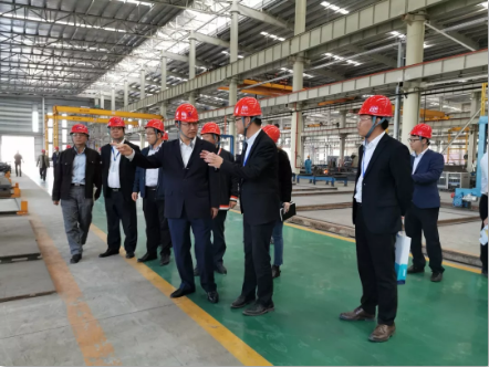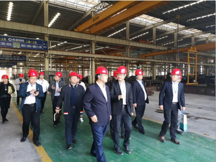 随后,调研组一行前往生产车间,近距离了解了钢结构生产加工的工艺流程,并观摩了焊接机器人、十字柱构件、120mm厚钢板焊接等特色设备和产品。这些产品将运送到广州恒大新能源汽车基地、深圳恒裕金融中心等工程项目,并由广东杭萧实施安装。