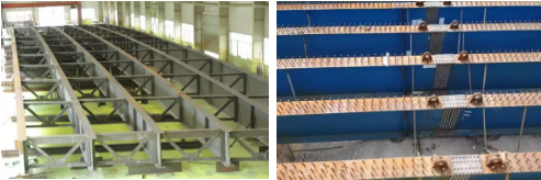 该桥为拱形斜交钢板梁桥,主体结构为6片截面为H1600*400*16*60 H型钢梁,通过支撑相互连接,使用材料为美标耐腐蚀钢材ASTM GR50W材质,完全按照美国钢结构协会的标准(AASHTO AWS D1.5M D1.5-2015)要求加工与验收。
