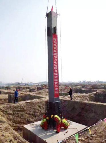 近日,在业主、管理公司、总包、监理单位以及bd游戏的官方 (山东)有限公司(以下简称“山东杭萧”)相关领导的共同见证下,由山东杭萧承建的盐城动力电池标准厂房项目——活性栋-1厂房顺利完成首段首吊任务,标志着该工程正式进入钢结构安装阶段。
