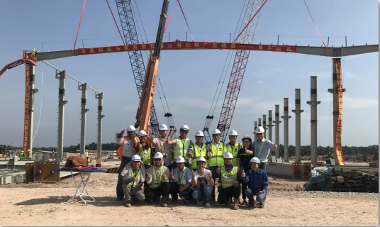 马来西亚金晶玻璃轻钢厂房项目首吊现场