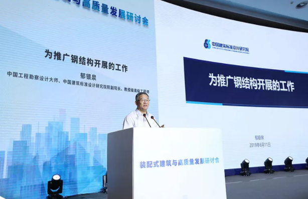 中国工程勘察设计大师、中国建筑标准设计研究院副院长、教授级高级工程师郁银泉发表《为推广钢结构开展的工作》的主题演讲。郁银泉介绍,钢材与传统的混凝土结构相比,钢结构建筑的混凝土容量可以节省50%。除此之外,还节省施工用水、节省木材,更重要是建筑垃圾和污水的排放可以大大降低。因此,发展钢结构建筑符合绿色发展的方向。