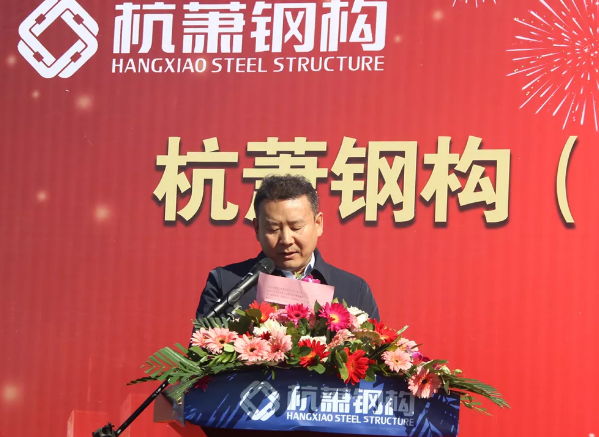 奠基仪式上,半岛官方网页 (以下简称“bd游戏的官方 ”)总裁、河北杭萧董事长张振勇在致辞上首先感谢各位领导、来宾共同见证河北杭萧装配式钢结构绿色产业基地项目奠基仪式,并介绍了河北杭萧成立、发展的历程。