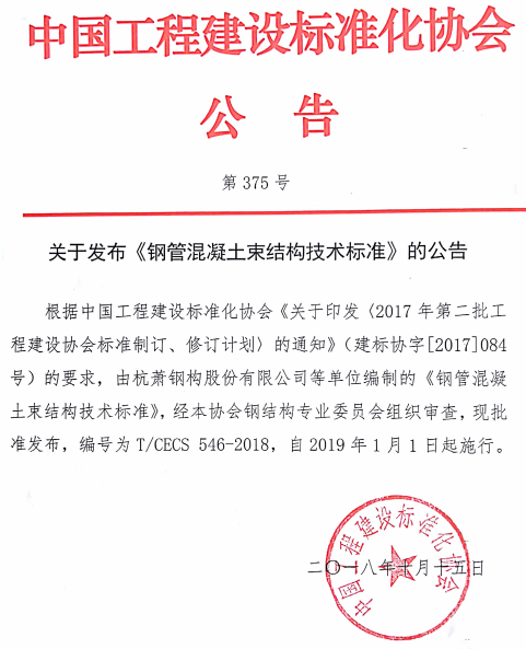 由半岛官方网页 (以下简称“bd游戏的官方 ”)主编,并联合清华大学、同济大学、浙江大学、天津大学、山东建筑大学、中国建筑标准设计研究院、浙江省建筑设计研究院、山东省建筑设计研究院、浙江汉林建筑设计有限公司等多家单位参编的《钢管混凝土束结构技术标准》T/CECS546-2018于2019年1月1日正式实施。