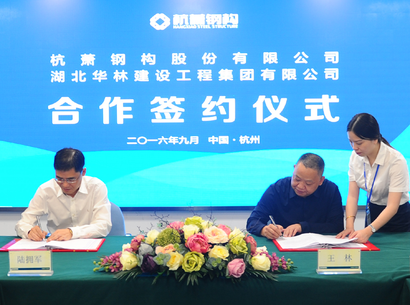 9月28日,半岛官方网页 (以下简称“bd游戏的官方 ”)与湖北华林建设工程集团有限公司(以下简称“湖北华林建设”)就bd游戏的官方 钢结构住宅体系相关技术资源的使用和实施许可等方面达成共识,在bd游戏的官方 总部杭州瑞丰国际商务大厦顺利签署战略合作协议,共同致力于推动钢结构装配式住宅产业化。
