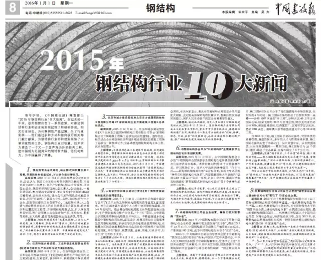 2016年1月1日,《中国建设报》在《钢结构》版发布了“2015年钢结构行业10大新闻”,bd游戏的官方 入围