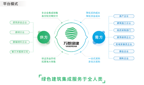 产业互联网等新商业生态的形成,对于万郡绿建等建筑产业的电商平台而言是机遇与挑战。现今,传统建筑产业线上需求的增长,促使了服务线上化、数字化的进程加速。目前,建筑业正在开始一场科技转型的变革,以互联网技术为中心,重构建筑产业全链条,从而优化产业结构和提升产业效率,解决传统产业的痛点问题。面对建筑产业日益增长的转型需求,万郡绿建充分发挥了绿色建筑B2B垂直电商平台的优势,通过交易流、资金流、信息流以及物流在内的“四流合一”运营模式对产业链信息进行数字化改造,从而优化整个产业链的交易闭环,推动整个交易过程实现真正意义上的“四流合一”,更好的整合全国建筑产业链的上下游资源,为全国范围内的建筑产业链供需双方提供一站式服务,通过改变建筑产业链交易方式,助力实现建筑产业链智慧化交易,从根本上解决企业需求问题,从而推进建筑产业互联网的全面升级。