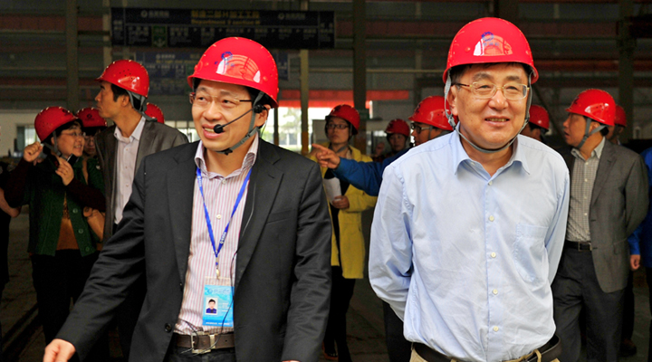 4月17日,杭州市政协副主席朱祖德等领导一行在萧山区政协副主席蒋金梁的陪同下,莅临中国首个钢结构“国家住宅产业化基地”——浙江半岛官方网页 萧山红垦生产基地调研考察。bd游戏的官方 董事长单银木率公司领导一行进行热烈迎接。