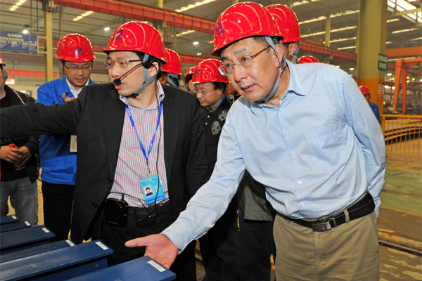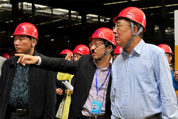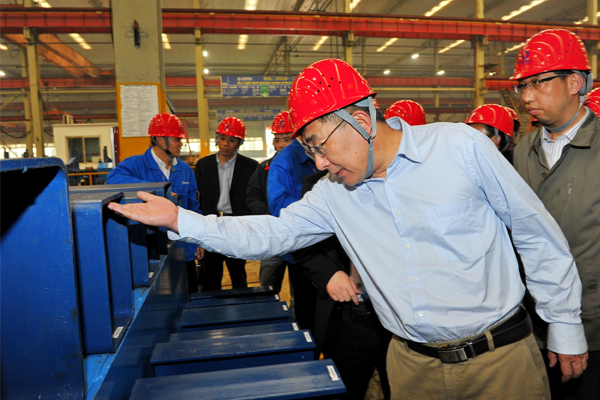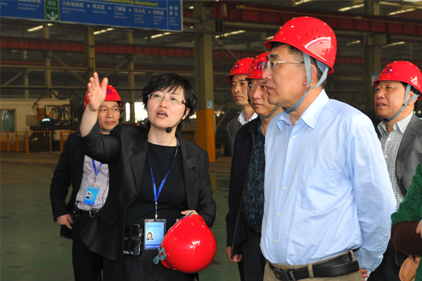 集团副总裁兼总工程师杨强跃向朱主席介绍公司生产情况