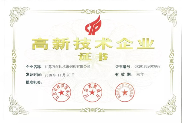近日,江苏万年达bd游戏的官方 有限公司正式收到了是由江苏省科学技术厅、江苏省财政厅、江苏省税务局联合颁发的高新技术企业证书。
