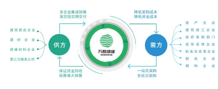 同时,万郡绿建建成了230000平方米的超大型展示中心,为平台供方会员的产品、技术和品牌提供360度全方位展示、宣传与推广;为需方会员提供一站式整体采购解决方案;为行业上下游企业搭建围绕商务、技术、行业发展为主题的各种线下互动交流平台。