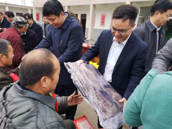 蔡志恒总经理与孟津县领导一起,为贫困户发放慰问物品