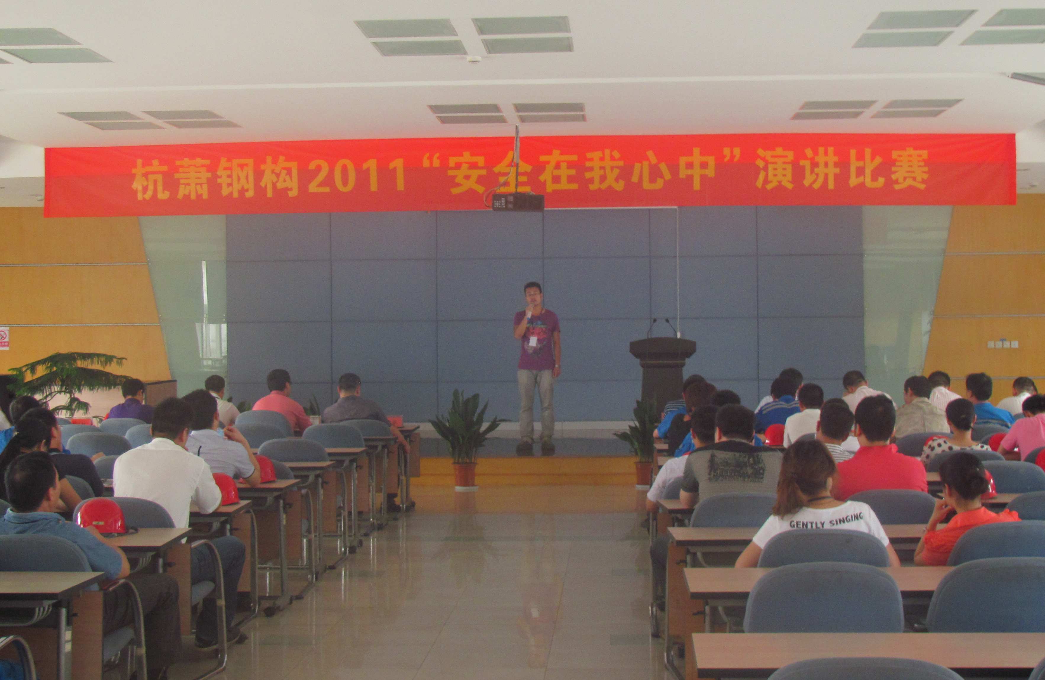安全是生命的依托,同时也是公司稳定发展的基础。为宣传安全生产政策法规,加强员工安全生产意识,营造安全生产氛围,我司开展了2011年 “安全生产月”活动,并于2011年7月4日在杭州萧山办公楼三楼多功能厅举办了以“安全在我心中”为主题的演讲比赛。