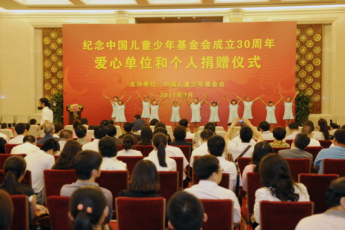 2011年7月5日,中国儿童少年基金会(下称“儿基会”)在北京人民大会堂举行“纪念中国儿童少年基金会成立30周年——爱心单位和个人捐赠仪式”,为支持“安康计划—儿童安全教育工程”(以下简称工程),我司捐赠现金15万元,用于建设壹间安全体验教室。