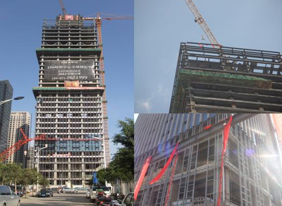 2012年1月15日上午9点18分昆明欣都龙城钢结构工程顺利结顶,甲方钟总、袁总、监理单位、总包单位人员均参加了本次结顶仪式。