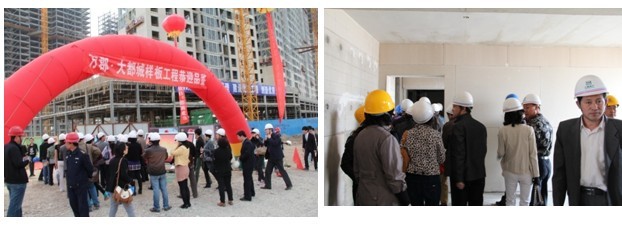“工地开放日”是万郡房产在房屋建设过程中推出的一项活动,万郡房产根据工程施工进度的具体情况邀请客户参观工地的材料展示区、工程样板间等施工现场。活动当天,所有受邀客户集体乘坐看房车进入工地,由专业工程师向客户讲解建筑使用材料、建筑工艺、工法,使新老客户不仅丰富了钢结构的专业知识,更加深了解了不同于传统住宅的钢结构工艺。业主对万郡此次活动的举办都表示赞同,工程质量的展示更坚定了他们对钢结构住宅的信心。
