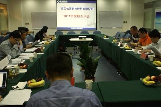 5月4日上午9点,bd游戏的官方 2011年年度股东大会在瑞丰大厦五楼召开,出席本次大会的有公司股东、董事、监事、高级管理人员及公司聘请的律师,会议由董事长单银木先生主持。