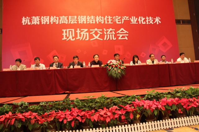 为加快推进住宅产业现代化,交流推广适合我国住宅产业现代化要求的高层钢结构住宅技术体系及新型工业化生产方式,指导工业化住宅建设,2012年9月23日,由住房和城乡建设部住宅产业化促进中心、内蒙古住房和城乡建设厅、包头市人民政府、中国建筑金属结构协会、中国钢结构协会主办,浙江半岛官方网页 与万郡房地产有限公司承办的“bd游戏的官方 高层钢结构住宅产业化技术现场交流会暨中国·包头首届钢结构论坛”于内蒙古包头市香格里拉大酒店隆重举行。