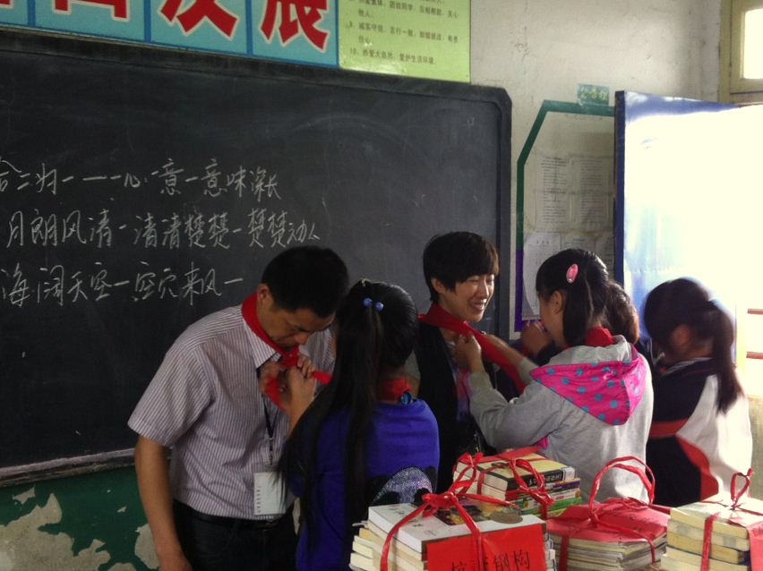 杭萧一行人员的到来受到了学校领导和同学们的热烈欢迎,学生代表们还给我们系上表达他们祝福的红领巾。看到孩子们一张张甜美的笑脸,我们为能为学校的建设和孩子们的长远发展奉献绵薄之力而感到无比欣慰。