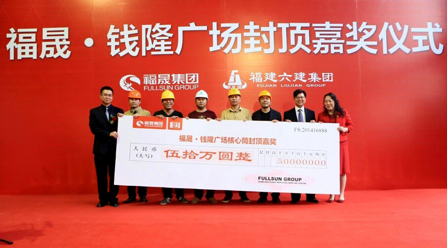 有限公司承建的福晟·钱隆广场钢结构工程核心筒顺利封顶,封顶嘉奖仪式也在当日举行。